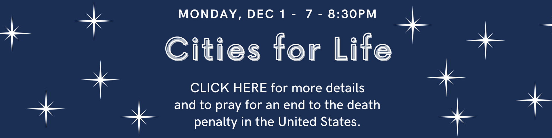 The annual Cities for Life celebration, marks the end of the death penalty in many U.S. states and countries around the world, and continues to advocate for its worldwide abolition. This service will be led in the Church by Father Dustin Feddon; the Keynote Speaker will be Dr. Susan Recinella who will tell us about counseling mothers of both victims and accused, and Bishop William Wack will give us his thoughts about the death penalty.